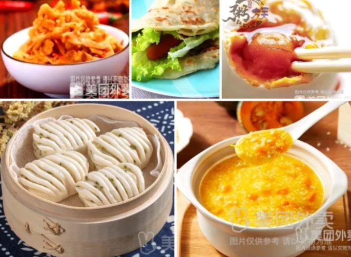 小米南瓜粥+葱油小饼+榨菜+手抓饼+咸鸭蛋